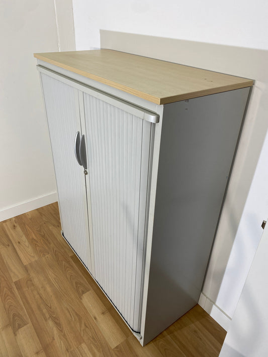 ARMARIO MEDIANO GRIS, METALICO, CORREDERA, TAPA DE MADERA 130X100X45