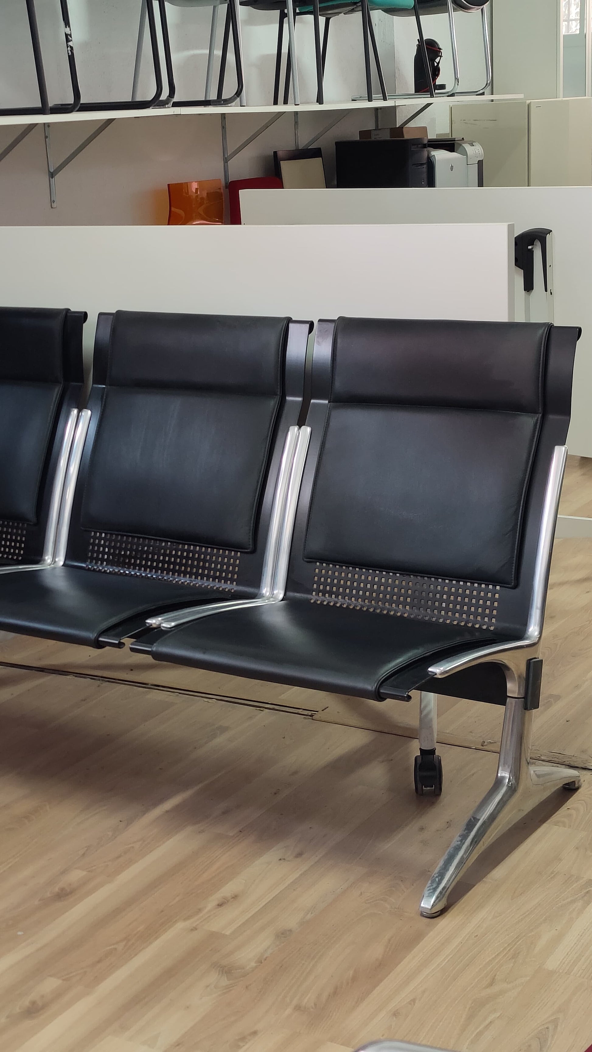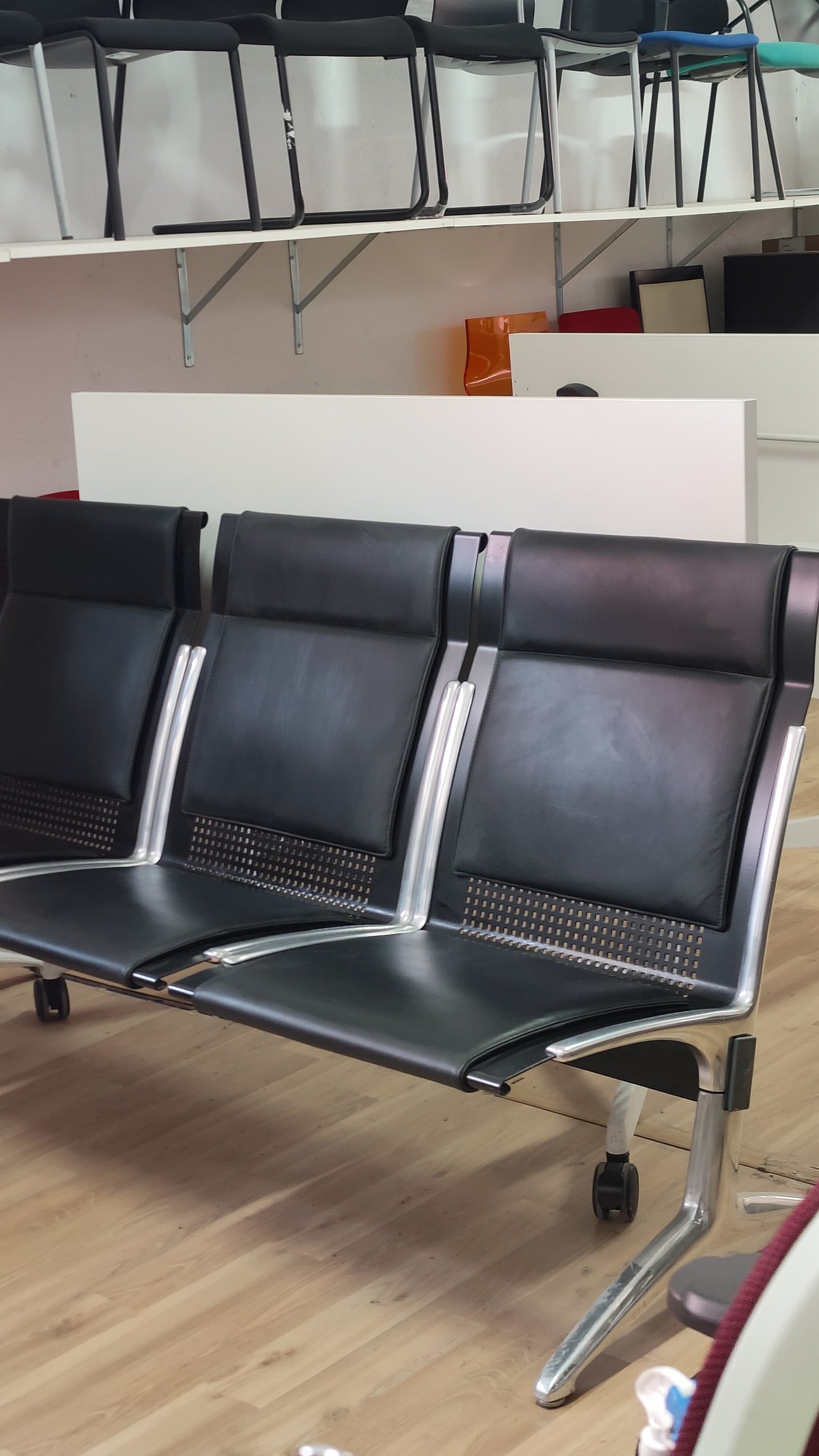 BANCO DE 3 ASIENTOS CUERO NEGRO. PERFILES CROMADOS.